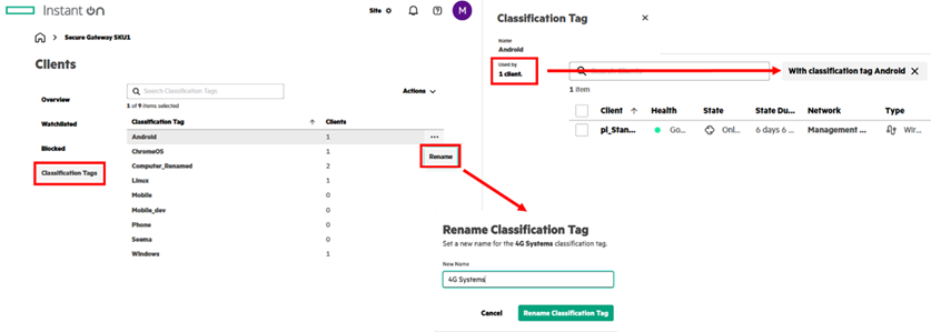Administrators also have the capability to better filter, sort, and identify client tags across their network in a new screen in the client management tab. Admin’s will see the number of devices related to a tag and will be able to easily rename a tag on their list with the simple click of a button.