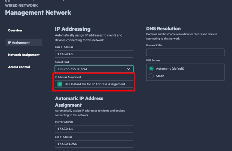 Finally, the much-requested “disable DHCP server” from our Community is now directly in the portal, empowering you to tailor your environment to fit specific needs when an Instant On Secure Gateway is installed on the network. By default, Instant On will be used to assign IP addresses. If you have an external DHCP server or gateway that provides this function, or if you already have an IP scheme in place, disabling this setting will allow your external service to handle IP assignments.