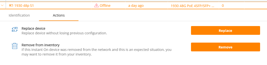 For switch replacement scenarios, if there is an offline device we can use replace option (as shown below) workflow which will get the new switch onboarded with the same previous configuration.